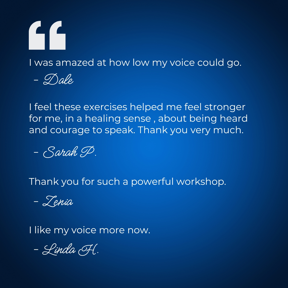 Voice Workshop and Retreat Facilitator